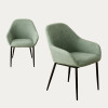 ¡Completa tu comedor o cocina con nuestros packs de 2 sillas! Este pack está compuesto por 2 sillas Vega, tapizada en color menta con patas de metal negro. Una estética sofisticada cuyo encanto reside en la combinación del tapizado con su respaldo curvado y reposabrazos, con el que adquiere un carácter gustoso y extra confortable.