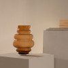 La estética más armónica y apacible con Atija, un elegante jarrón compuesto de vidrio con acabado marrón que destaca por la redondez de sus formas, aquellas que lucen ordenadamente unas sobre otras, consiguiendo una pieza alargada y con presencia. Sutil, sofisticado y completamente agradable a la vista, aportando equilibrio a todo tipo de ambientes.