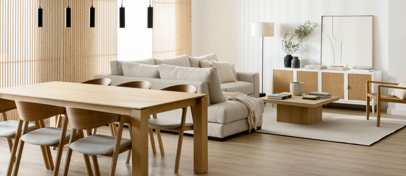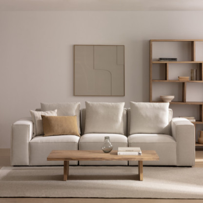 Muévete entre la gama de cremas, arenas, piedras y blancos. Y no solo en los muebles, también en los complementos.