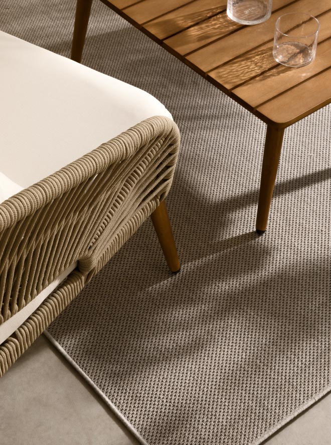 Las alfombras de exterior son imprescindibles en un jardín o terraza porque ayudan a delimitar los distintos ambientes, así que contar con una para tu rincón chill out es fundamental. Además de aportar una pisada más cómoda y permitirte ir sin zapatos, las alfombras garantizan un plus de calidez y confort.