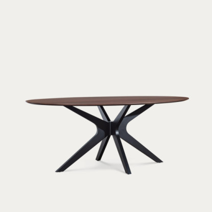 Una manera práctica de aplicar este concepto es destinar a la zona de comer los muebles de madera oscura. Así podrás lucir esta mesa de comedor ovalada, chapada en roble con acabado nogal. ¡Un extra de elegancia al ambiente de tu comedor!