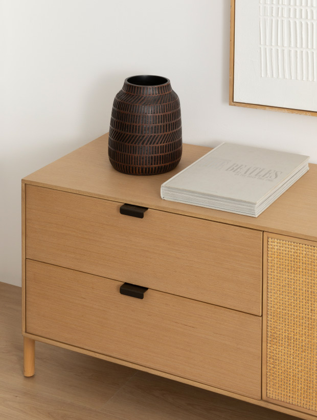 La belleza está en lo natural, en el estilo y en el equilibrio. El aparador de roble y ratán Breda no solo almacena objetos. También guarda la calma, la pausa de las sobremesas, un estilo de vida más pausado y esa sensación de hogar que solo un mueble como este consigue transmitir.