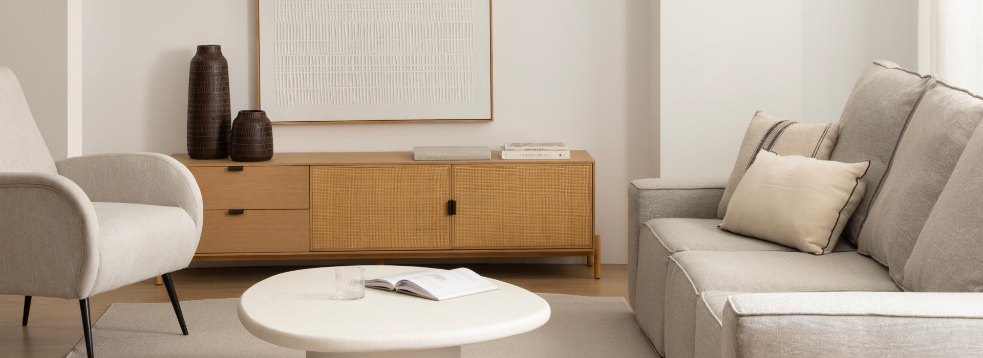 No siempre hay que irse lejos para desconectar. A veces solo hace falta rodearte de texturas que te envuelvan en calma, y este mueble de televisión en roble y ratán lo demuestra. Una pieza sencilla y cálida que no solo decora: también abraza.