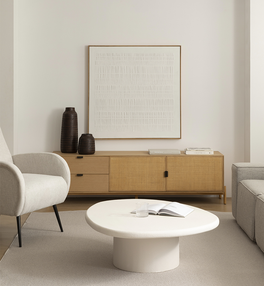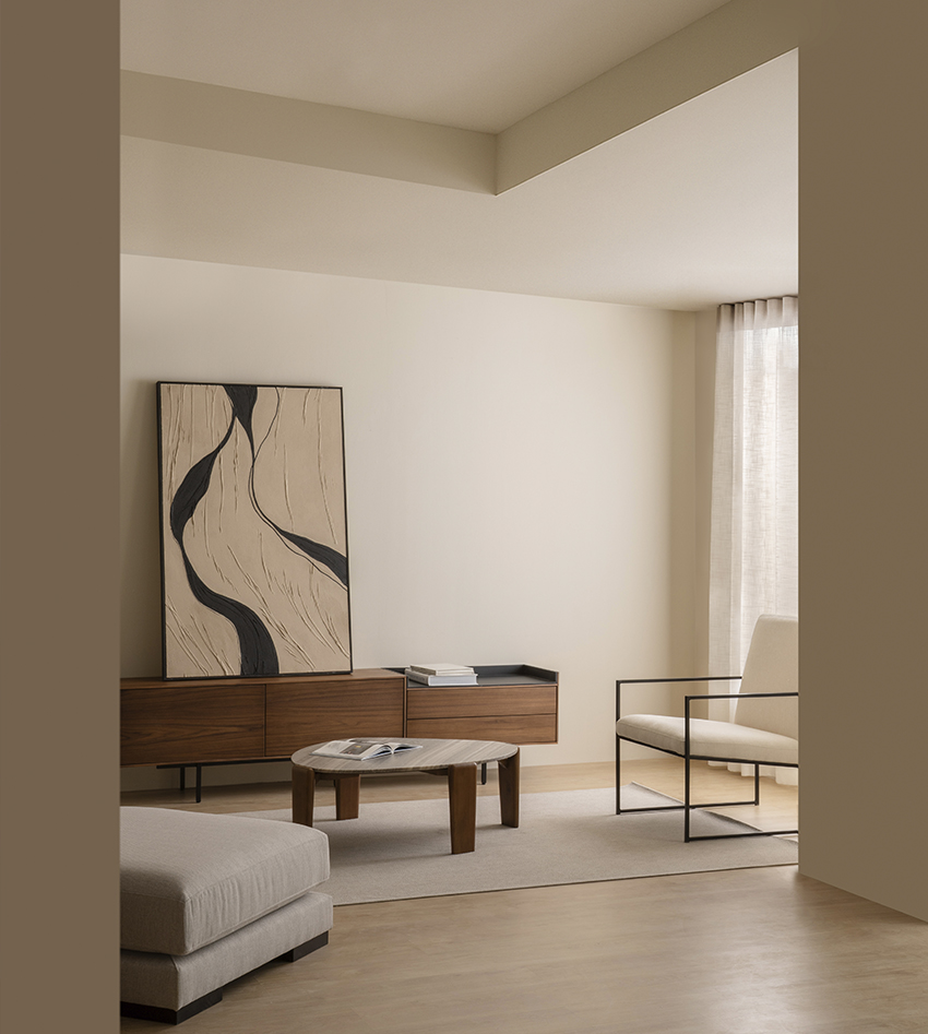Une practicidad y diseño en piezas de líneas sencillas. Su gran capacidad de almacenaje y estética limpia crean espacios neutros y relajantes. Perfecta para ambientes funcionales con un toque de serenidad.
