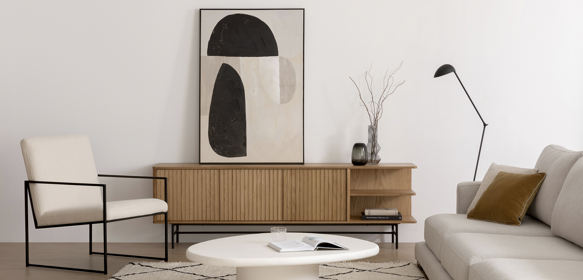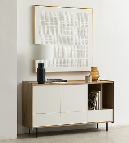 Nadine y Zach son la combinación perfecta de acabado natural, lacado y metal. Dos colecciones de colores neutros y líneas sencillas que combinan diferentes opciones de almacenaje, perfectas para crear un espacio funcional y con estilo.