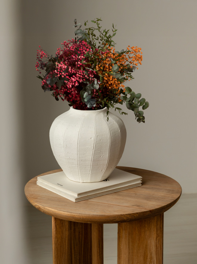 Este ramo de flores preservadas embellece cualquier lugar con su mezcla de paniculata y eucalipto en tonos fucsia. ¿Lo mejor? Al estar preservadas se mantienen igual de bonitas que el primer día durante años.