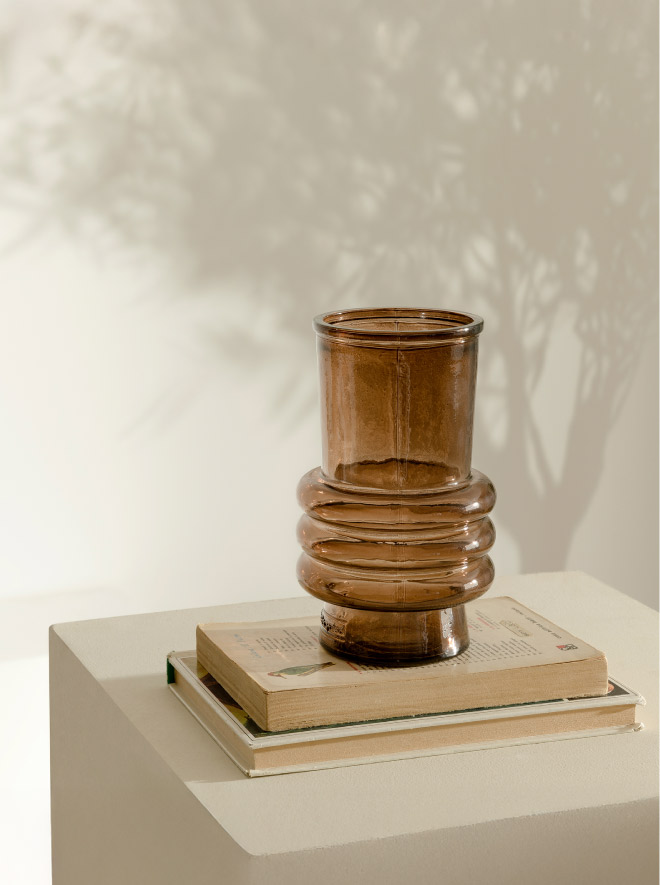 Nuestra idea: este jarrón fabricado 100% de vidrio reciclado con una intensa tonalidad azul y formas redondeadas que invitan a la cama. Ideal para darle ese toque natural y responsable a tu hogar.