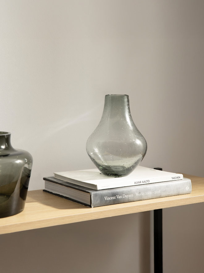 Por ejemplo, para un estilo cálido y acogedor, opta por una vitrina de madera, como esta vitrina en color verde pastel, con dos grandes puertas de vidrio, y decórala con elementos de cerámica para aportar textura, autenticidad y un aire artesanal que hará que cada objeto luzca aún más especial. Una idea: este precioso jarrón de tamaño pequeño y forma irregular que imita los relieves propios de la isla italiana de Capri.