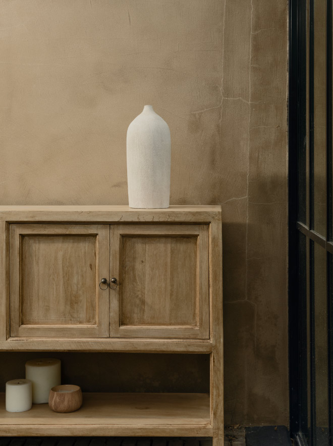 Son el punto de equilibrio que tanto necesita el estilo cottagecore. Formas suaves y sin excesos para dejar que la belleza de los materiales naturales sea la protagonista. Las piezas de diseño artesanal, como esta consola de madera maciza, transmiten serenidad mientras crean espacios funcionales y totalmente atemporales.