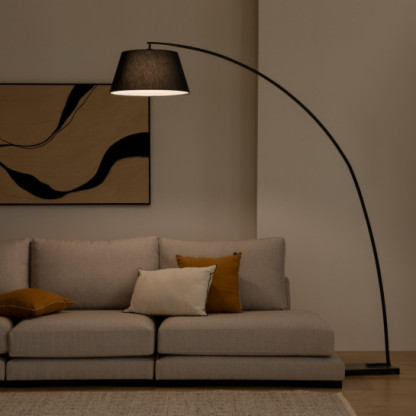 Lámparas de pie como Arch, metálica y con base de mármol en color negro, son complementos de decoración que aportan elegancia a cualquier salón. Además, su forma de arco consigue una mayor sensación de amplitud.