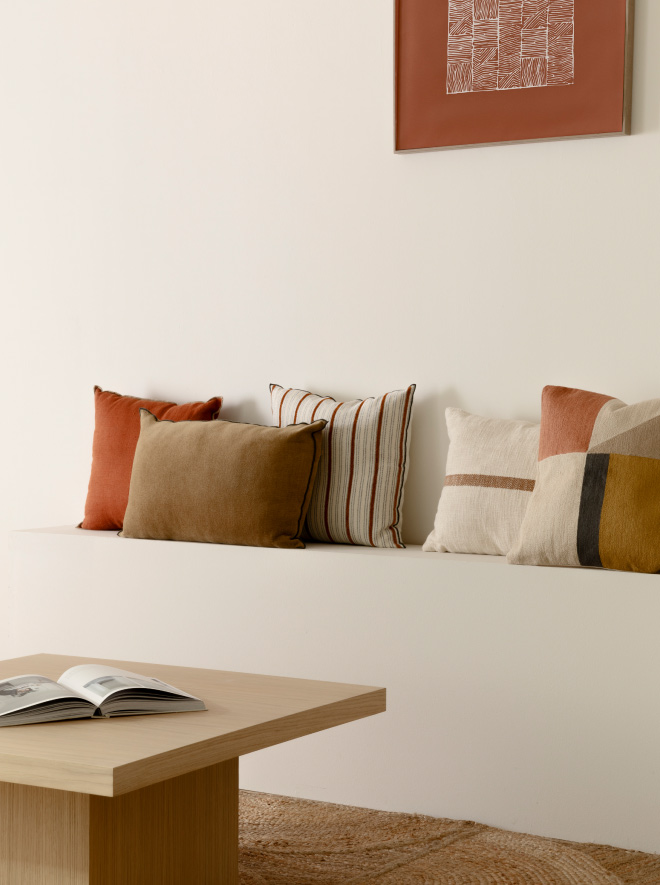 El truco ahora es añadir un toque de color intenso para darle personalidad al ambiente. Una forma fácil de conseguirlo y a su vez no recargar es incluir cojines llamativos.