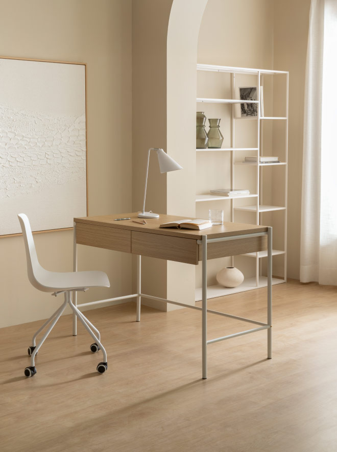 Este mueble hay que completarlo con una silla de escritorio cómoda que permita el máximo confort durante las largas jornadas de estudio.
