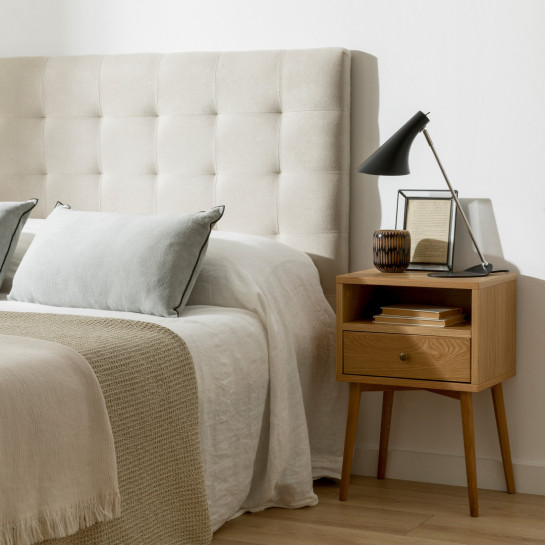 Upholstered headboard set 150 beige Ilan + 2 bedside tables natural 1 drawer Hegas