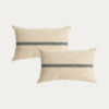 Complete your spaces with our set of 2 cushions! This pack includes 2 Eda cushions in a horizontal shape, made of 100% cotton with a uniform off-white print combined with a subtle dark mint horizontal stripe.