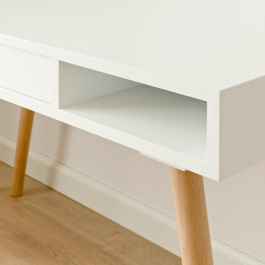 White desk with wooden legs