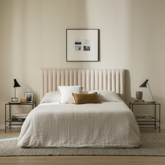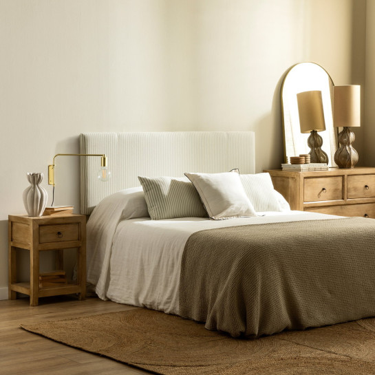 In terms of sizes, we have options for all beds, from the smallest 90 cm headboards, perfect for children's rooms, to the largest 180 cm for master bedrooms. The variety in styles and materials is equally extensive. You can choose from wooden headboards that add a natural and warm touch, white headboards for a more minimalist and luminous style, or upholstered headboards, which offer an unparalleled feeling of comfort and elegance. Within upholstered headboards, we have options such as padded headboards, ideal for adding a touch of sophistication, and headboards with studs, which add a more daring and distinctive style.