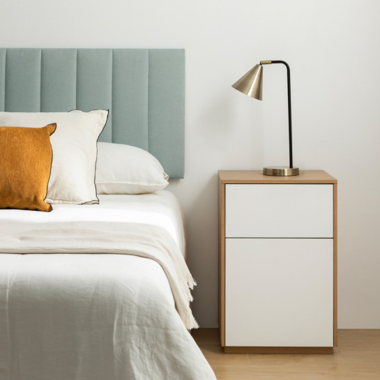 Comodino impiallacciato bianco e rovere 2 cassetti A40