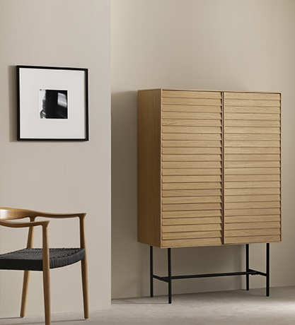 De Vinti collectie geeft je ruimte een warme, natuurlijke uitstraling. Met eiken- of witte fineer en massief houten poten combineert ze functionaliteit en stijl.