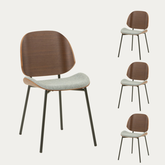 Pack 4 cadeiras em madeira de nogueira com estofamento cinza